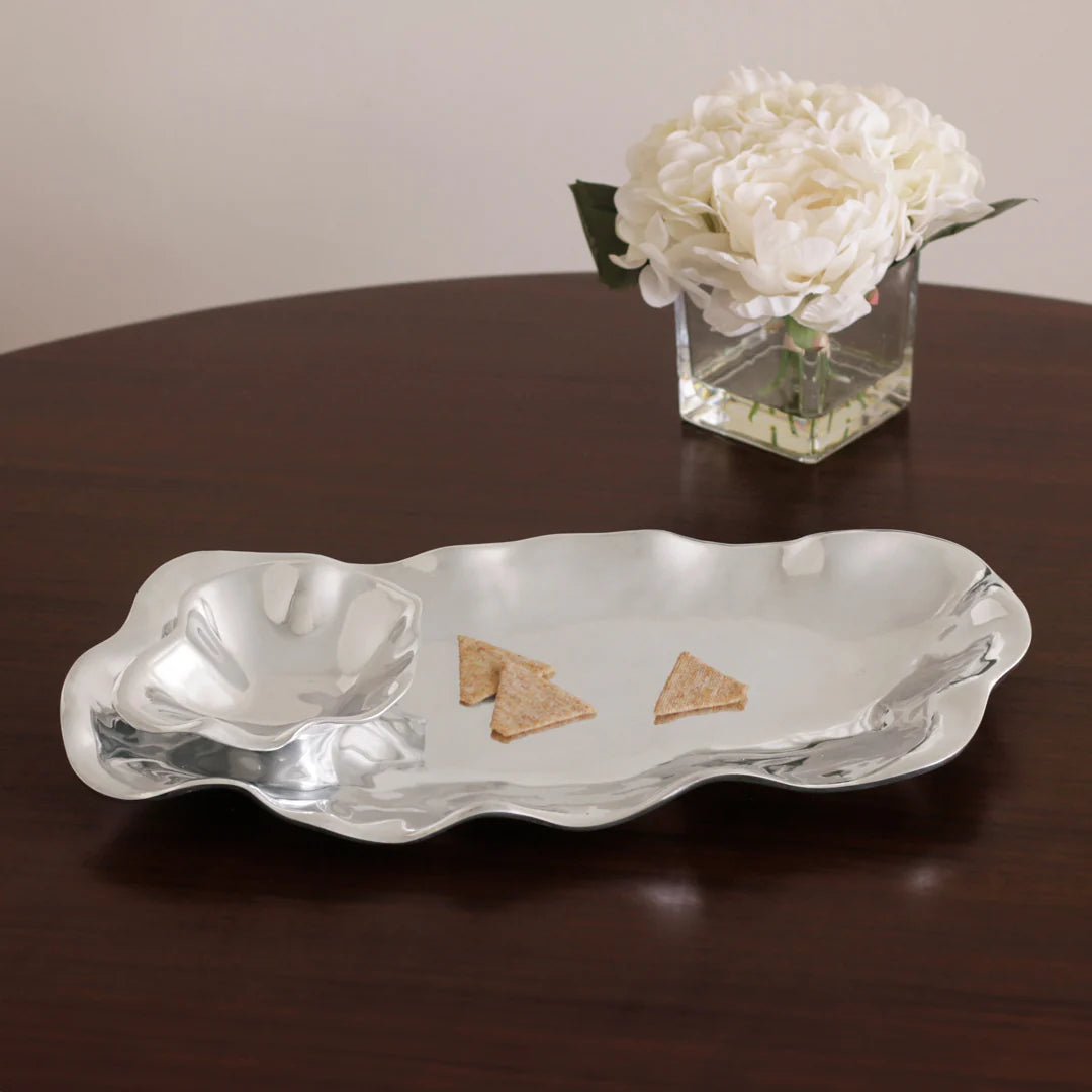 Bergamo? Bergamo is an Italian city northeast of Milan, in the Lombardy region. Its older upper district, called Città Alta, is characterized by timeworn cobblestone streets, encircled by ancient walls. Inspired by the cobblestones of the old city and presented in our signature hand polished metalware, the VENTO Bergamo Oval Chip & Dip is two great pieces in one fantastic item. The attractive two-parter in gleaming metal offers stylish design, and elegant practicality. With its detachable dip bowl, this versatile oval piece is perfect for serving fresh fruit, veggies, and crackers with your favorite dips and spreads. An original Beatriz Ball design sustainably handmade of an FDA safe, easy-care, oven and freezer friendly aluminum alloy. Hand wash and dry.