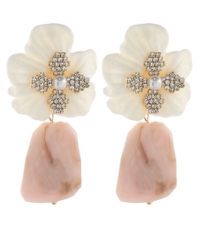 CRYSTAL FLOWER AND GEOMETRIC EARRINGS