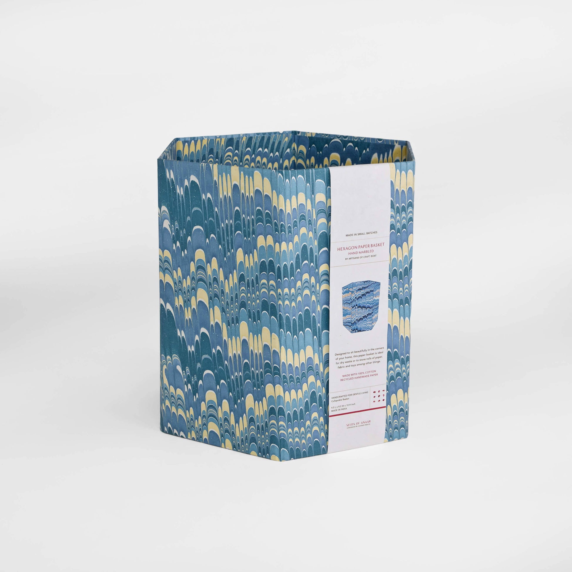 Recycled Cotton Handmade Paper Basket are made by Master Artisans who have been creating vintage style boxes and artisanal products for generations in Jaipur. The Paper design is Hand Marbled, produced in Small Batches only. Designed to Inspire a home filled with Artisanal Slow Living Objects.