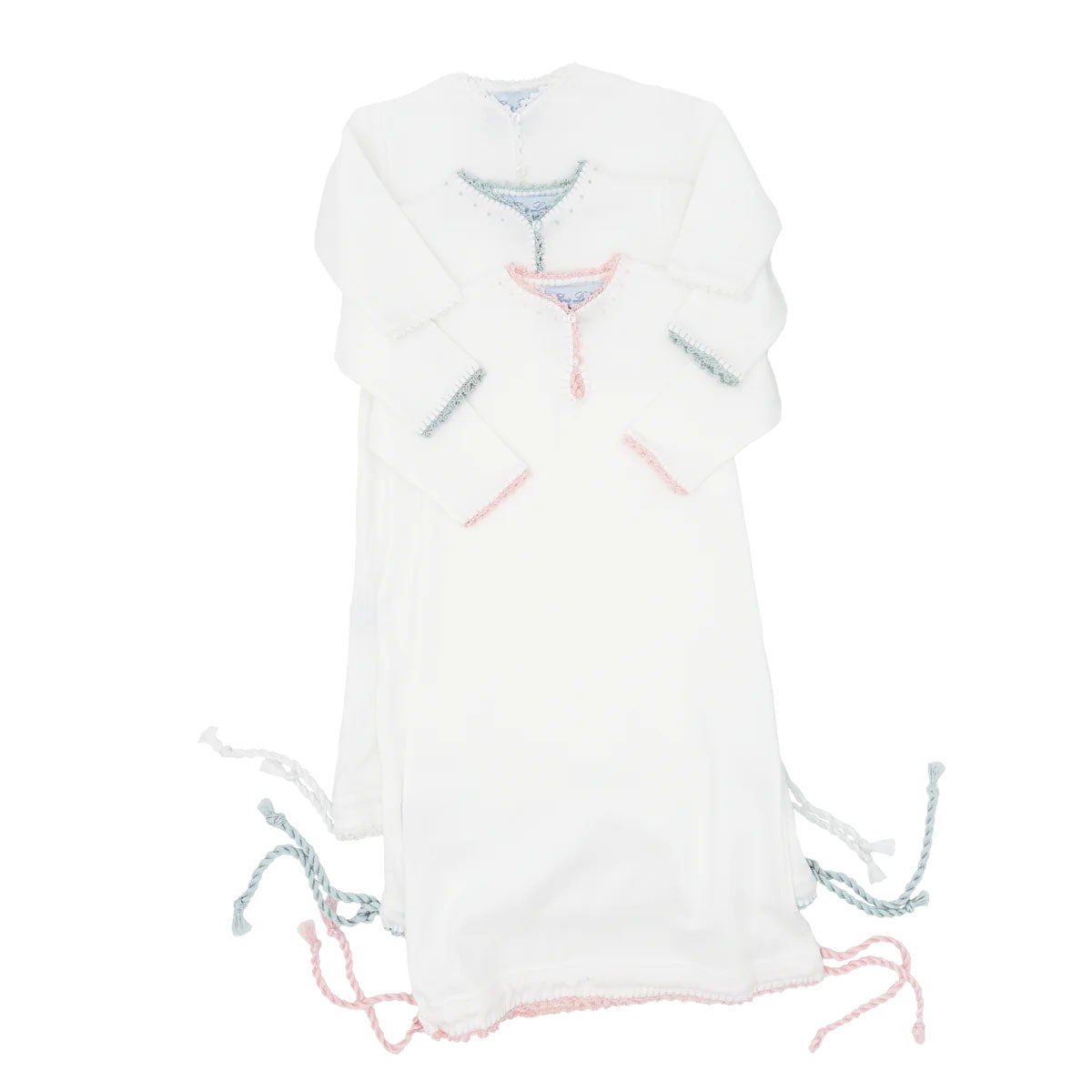 Our Baby Sack Buttons At The Neck And Features Crochet Tatting, French Knot Embroidery And Gathers At The Hem To Keep Those Little Toes Cozy.