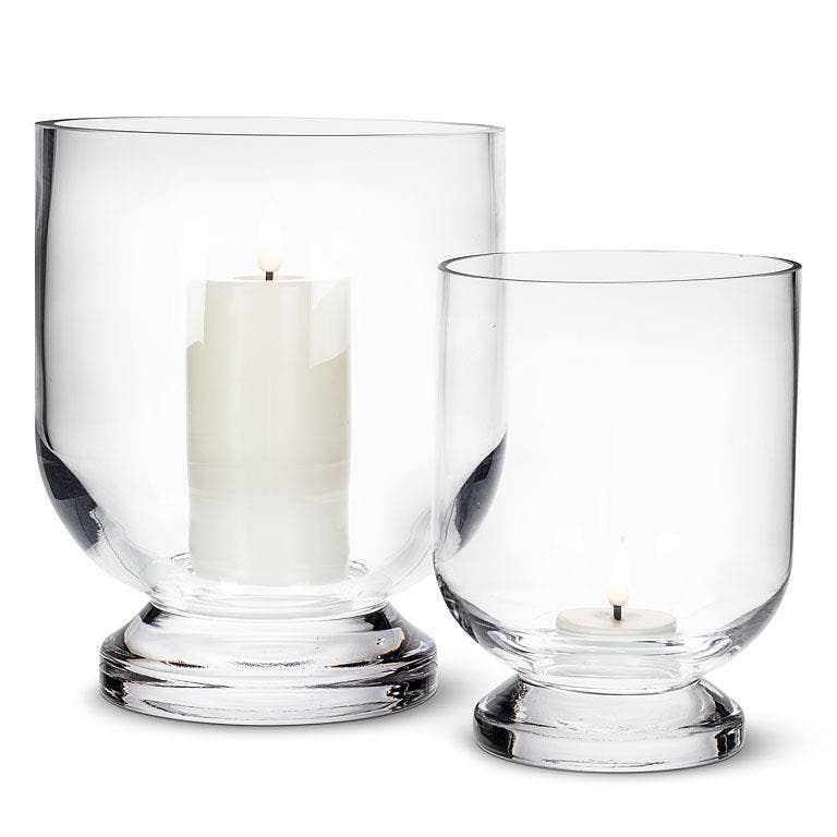 Give everything from flowers to candles an elegant, elevated place to shine with this Large Heavy Sham Vase/Hurricane. Crafted out of glass, this heavyweight vase/hurricane's curvaceous shape and sturdy circular base make an ideal complement for candles and flowers alike — accented with greenery or simply on its own to highlight tables, counters, mantles and more. Also available in a smaller size.