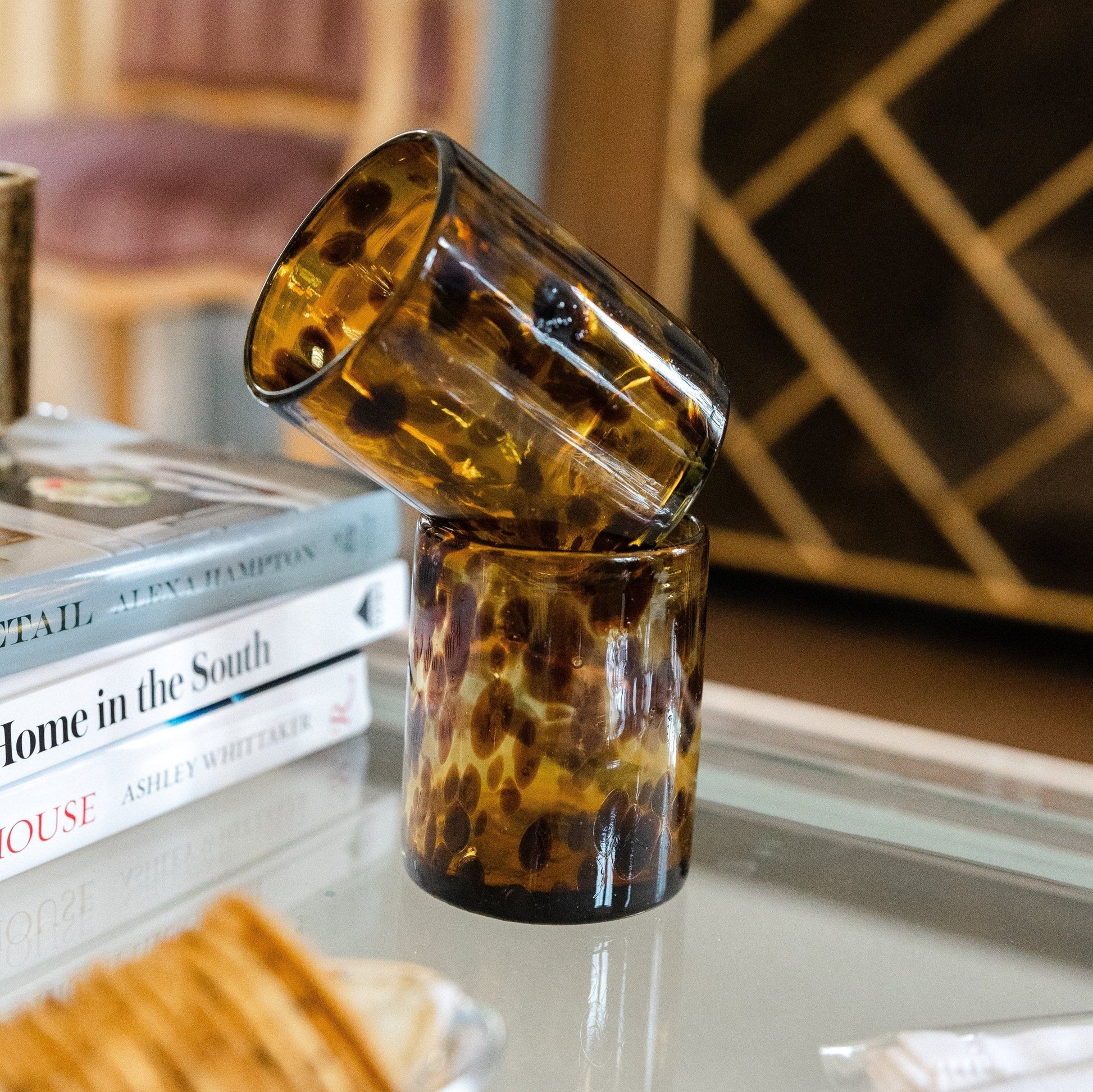 Turn every pour into a moment of artistry with our Brown Tortoise Rocks Glass. Hand-blown by artisans in San Miguel de Allende, this glass features a distinctive tortoiseshell pattern in rich, warm amber and espresso tones. No two are exactly alike—each piece swirls with its own unique rhythm, just like the drinks it holds.